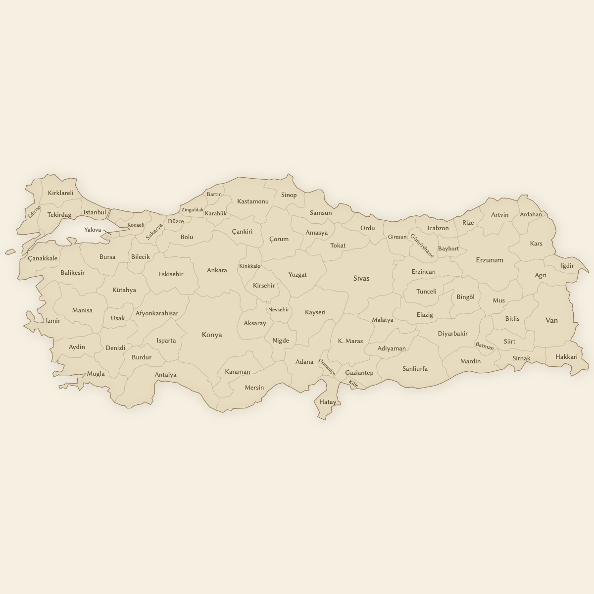 Create a custom map of Turkish provinces and export it as a printable format or for use in your publication or presentation.